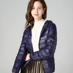 A tecnologia impermeável garante que fiques protegida de chuvas inesperadas, enquanto o enchimento suave em penas te mantém quente sem tornar o casaco volumoso. As pregas refinadas acrescentam um toque de elegância, tornando este casaco perfeito tanto para looks casuais como para conjuntos mais sofisticados.