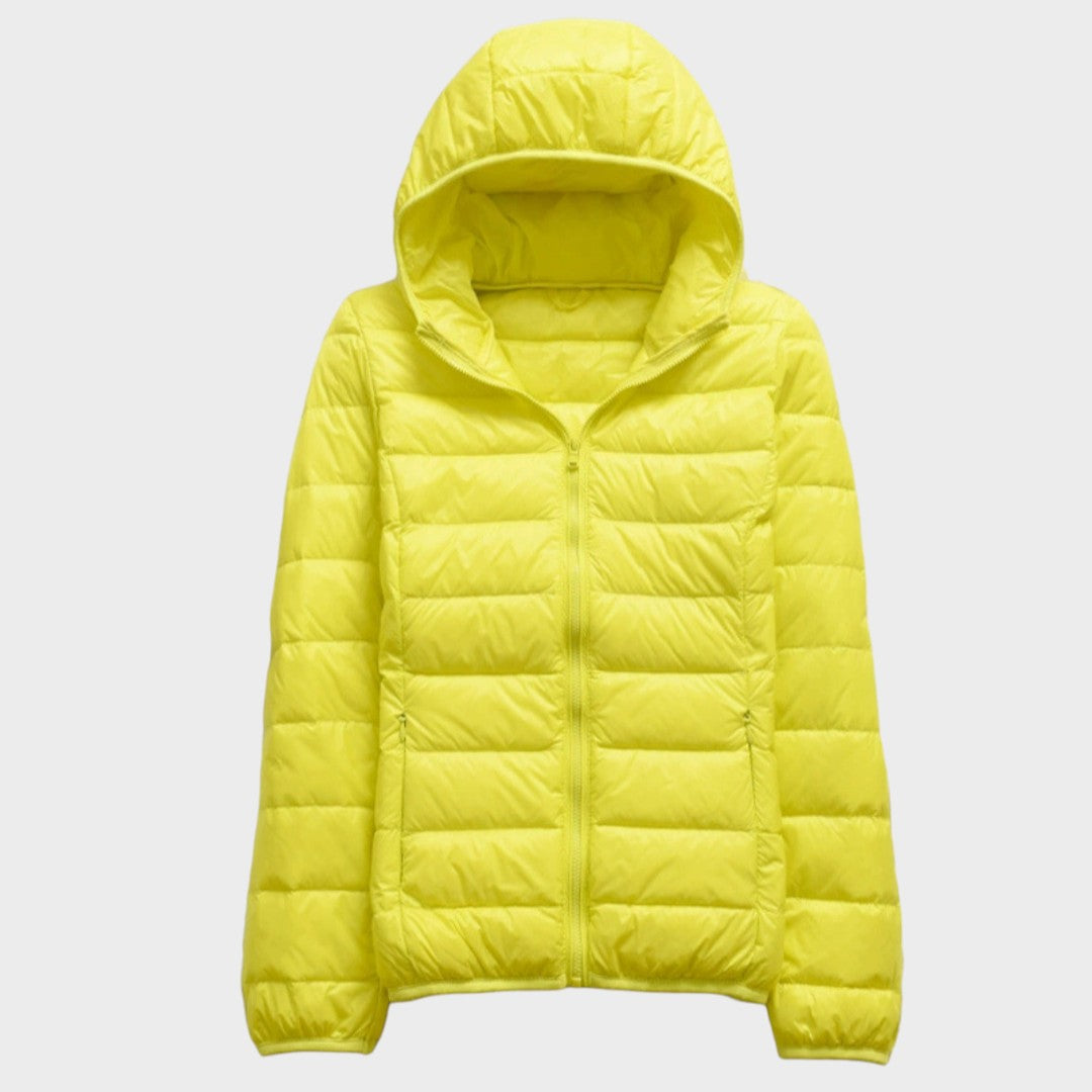 A tecnologia impermeável garante que fiques protegida de chuvas inesperadas, enquanto o enchimento suave em penas te mantém quente sem tornar o casaco volumoso. As pregas refinadas acrescentam um toque de elegância, tornando este casaco perfeito tanto para looks casuais como para conjuntos mais sofisticados.