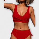 Este biquíni foi criado para mulheres que querem sentir-se femininas e confortáveis. A cintura subida e o efeito de pregas disfarçam suavemente a barriga e a cintura. O top oferece suporte sem apertar e valoriza subtilmente o decote. Perfeito para quem procura confiança sem abrir mão de estilo.