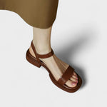 Com linhas simples e um design intemporal, estas sandálias castanhas de tiras largas e biqueira quadrada são o essencial perfeito para o verão. Elegantes e versáteis, adaptam-se a qualquer ocasião — do escritório ao passeio de fim de semana — mantendo sempre um visual sofisticado e confortável.