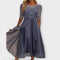 O nosso vestido especial para convidadas de casamento, com uma silhueta de comprimento médio, um corpete lindamente bordado e mangas curtas, é a escolha perfeita para qualquer ocasião festiva. Disponível em azul, verde, roxo, cinzento, azul escuro, rosa e bege, este vestido oferece elegância e conforto para qualquer evento.