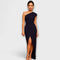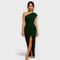 • Elegância intemporal: o design assimétrico do vestido e a gola inclinada dão um toque sofisticado ao seu visual.