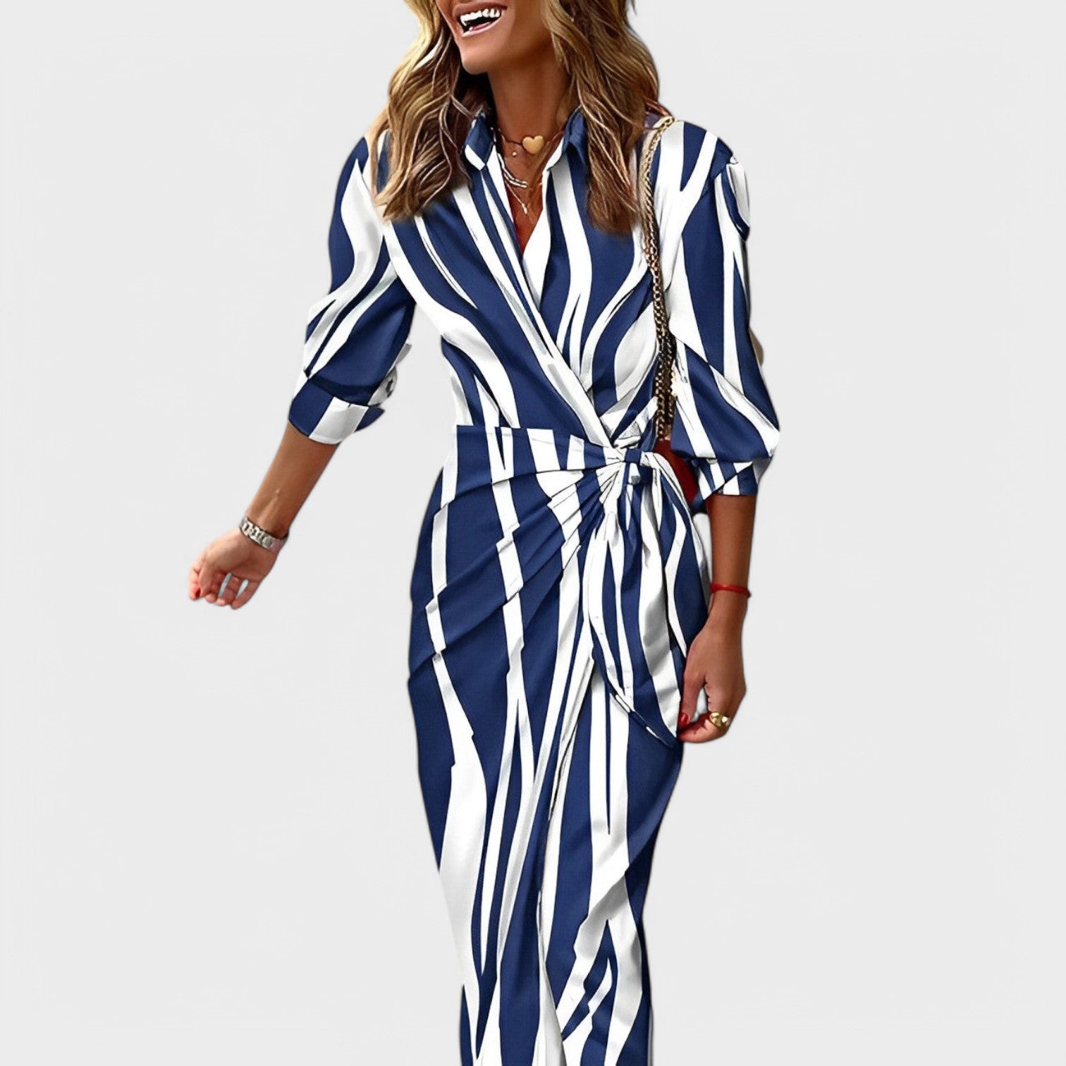 Entre na sala e dê nas vistas - com o Vestido de Primavera Anabela , irá exalar confiança e elegância feminina. A silhueta fluida e o padrão elegante fazem deste vestido o companheiro perfeito para qualquer ocasião - desde dias descontraídos a momentos especiais.