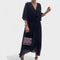 Este vestido preto fluido combina sofisticação e leveza com detalhes étnicos bordados que o tornam verdadeiramente único. Com mangas largas, decote em V e um laço ajustável na cintura, valoriza qualquer silhueta com conforto e estilo. O detalhe bordado em tons vibrantes adiciona um charme artesanal que transforma um look simples numa afirmação de bom gosto.