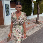Chame a atenção com este elegante vestido com decote em V, concebido para um look sofisticado e elegante. Com um design envolvente lisonjeiro com um elegante pormenor torcido, este vestido realça a sua silhueta com elegância. Quer vá a um evento especial, a um jantar ou a uma reunião formal, este vestido garante-lhe um visual requintado sem esforço.