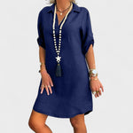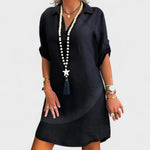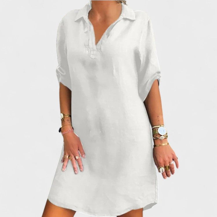 Com corte reto e um caimento leve, esse vestido traz o equilíbrio perfeito entre sofisticação e casualidade. O decote com gola e as mangas dobradas conferem um toque moderno e despojado, ideal para quem gosta de unir conforto e presença marcante em um só look. Versátil e prático, ele se adapta perfeitamente a diferentes acessórios, permitindo criar produções que vão do casual ao chic com facilidade.