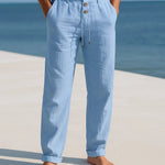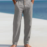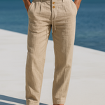 Frescas, sofisticadas e feitas para os dias que merecem leveza. Estas calças de linho são o equilíbrio perfeito entre conforto e elegância. Com cintura ajustável, botões em destaque e corte relaxado, são ideais para dias de sol, passeios à beira-mar ou eventos ao ar livre com dress code informal e requintado.